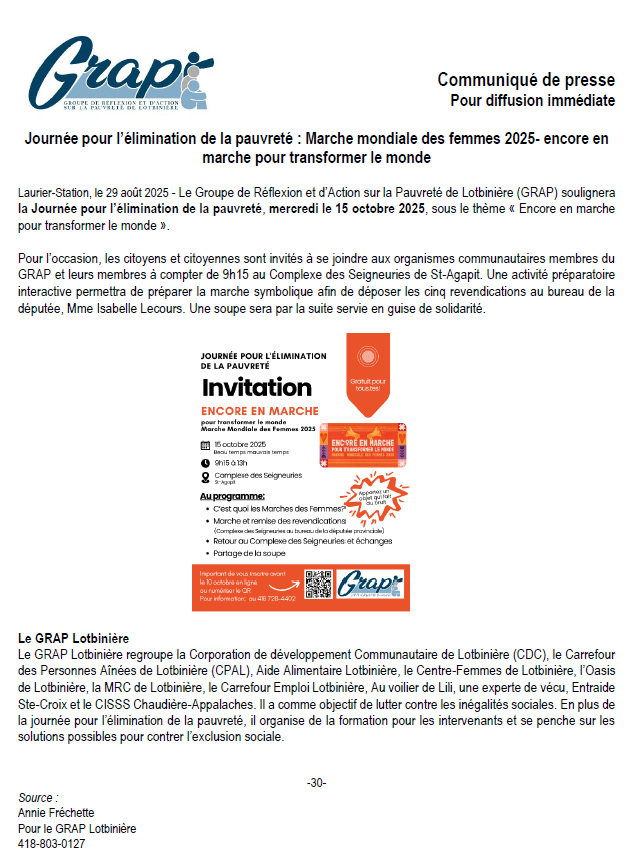 Journée pour l'élimination de la pauvreté: Marche Mondiale des femmes pour transformer le monde 15 octobre 2025 ...