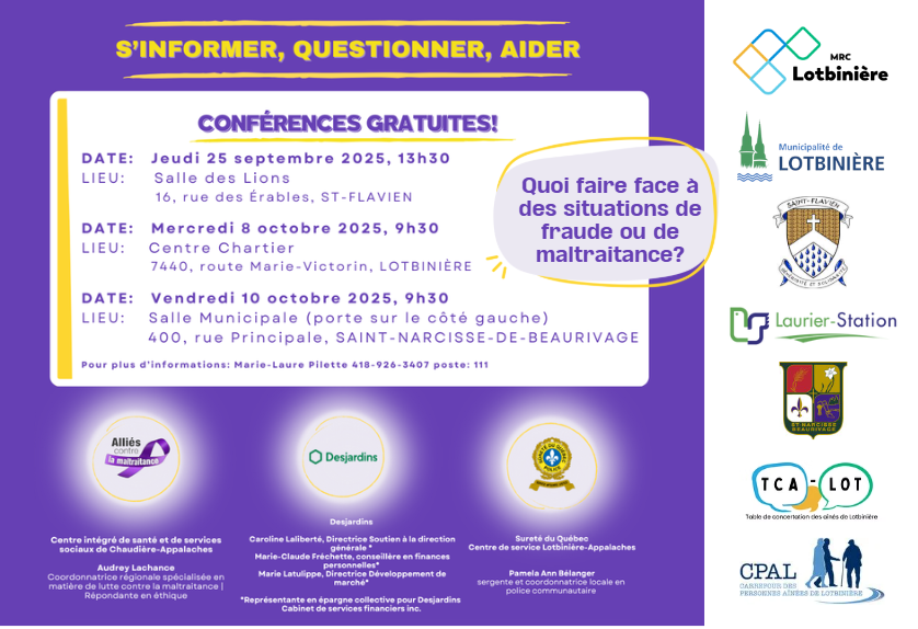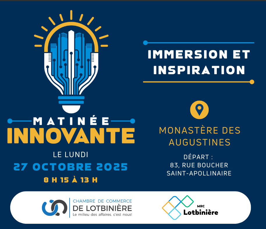 La MRC de Lotbinière vous invite à plonger dans l'univers du Monastère des Augustines, au cœur du Vieux-Québec. 27 octobre 2025 83, rue Boucher à Saint-Apollinaire à 8h15 19,06$ taxes incluses / personne Réservez votre place avant le 17 octobre 2025: MRC de Lotbinière présente Visite inspirante au...