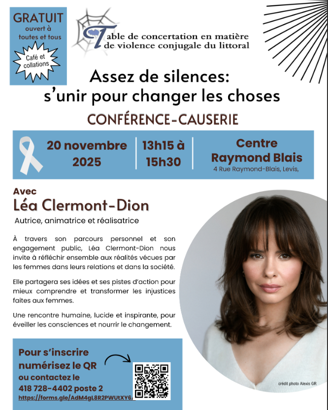 Cette rencontre, ouverte au public, abordera les enjeux de la violence conjugale avec sensibilité, expertise et espoir. Une occasion précieuse pour sensibiliser, informer et mobiliser nos communautés.